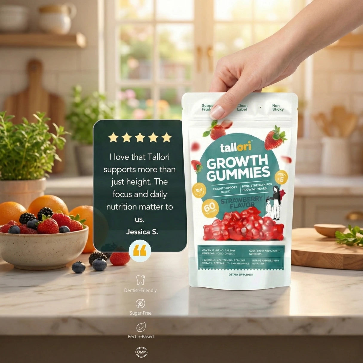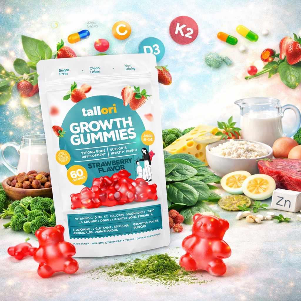 When these nutrients are low, natural growth may slow. Tallori helps support daily nutrition with sugar free height growth gummies for kids designed for picky eaters.